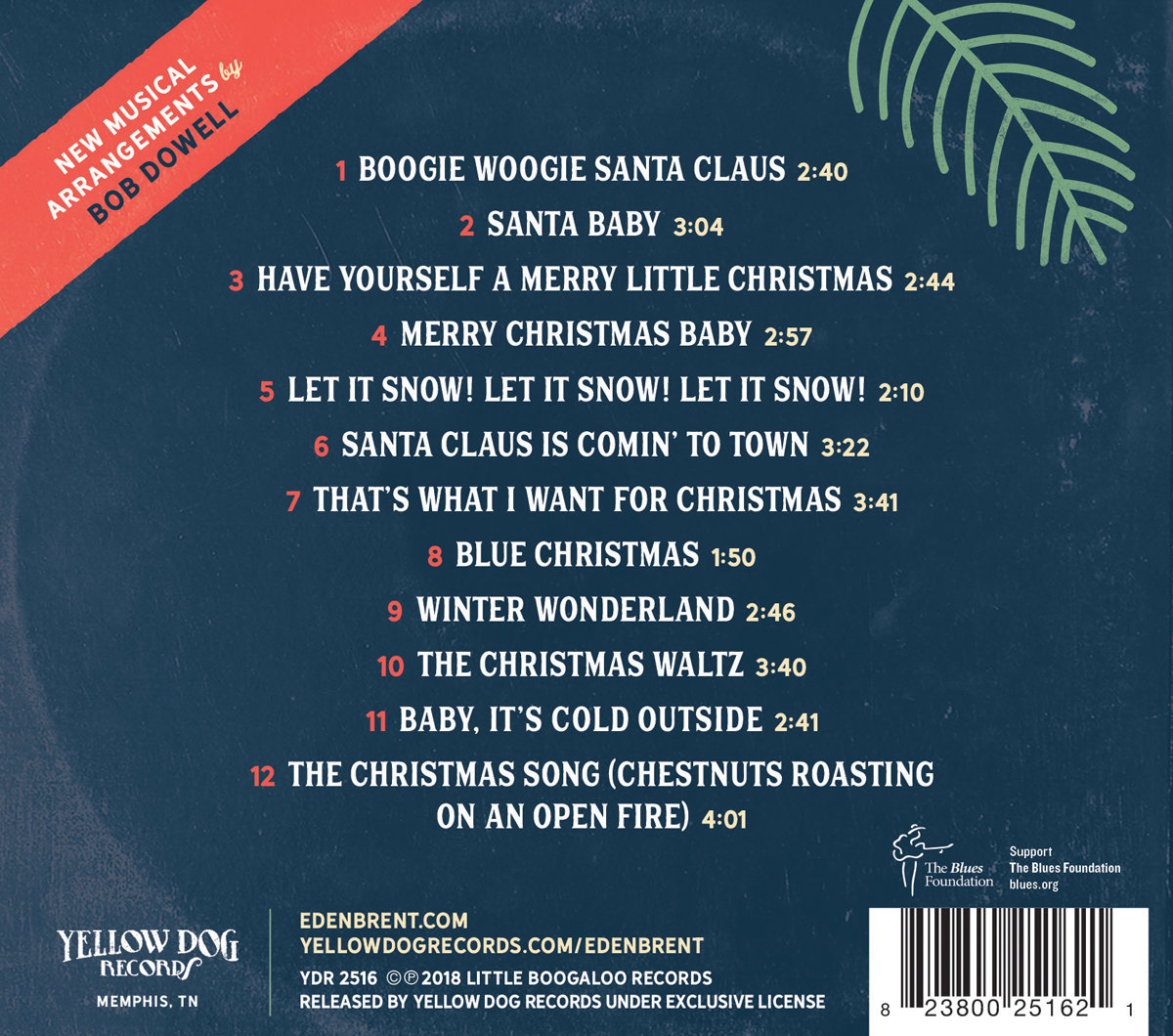 For the sessions, Bob tapped the deep pool of Memphis instrumentalists with whom he's played and recorded. The musicians heard here have worked with B.B., Aretha, Booker T., Dr. John, the Bo-Keys and more. This project had been years in the making, but this became a "hit it and quit it" recording. One practice, one take: this is what largely went down, with a team of Memphis stalwarts, Bob's inspired charts and Eden's earthy vocals sounding more Etta than Ella. Whether you're feeling a Dickensian winter bite or basking in balmy climes, this is a warm-hearted Christmas throwback you'll spin every year about this time!
